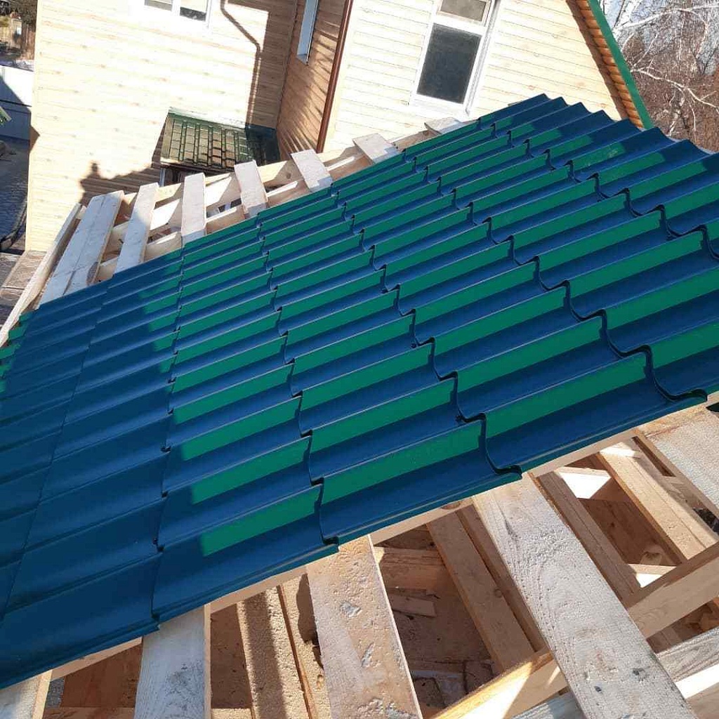 • Покрытие металлочерпицей. Долго сохраняющую защитные свойства крышу обеспечит корректный выбор материала, выполнение монтажа с должным качеством;